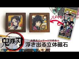 今回は 鬼滅の刃 キャラクター磁石の作り方のご紹介 3層のレジンで固めて浮き上がるように立体的に作ったので重厚感があります それでいて材料はお菓子の個包装 今回はコレクターカード2のパッケージを使用して 100均材料とは思えないクオリティー 手作りしおり