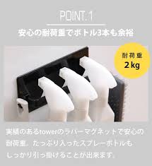 楽天市場 マグネットスプレーボトルハンガー タワー tower マグネット 磁石 ユニットバス お風呂 バスルーム ボトルホルダー スプレー ボトル ハンガー フック ラック 掃除 壁掛け 壁付けマグネット収納 おしゃれ ホワイト ブラック 山崎実業 yamazaki タワー
